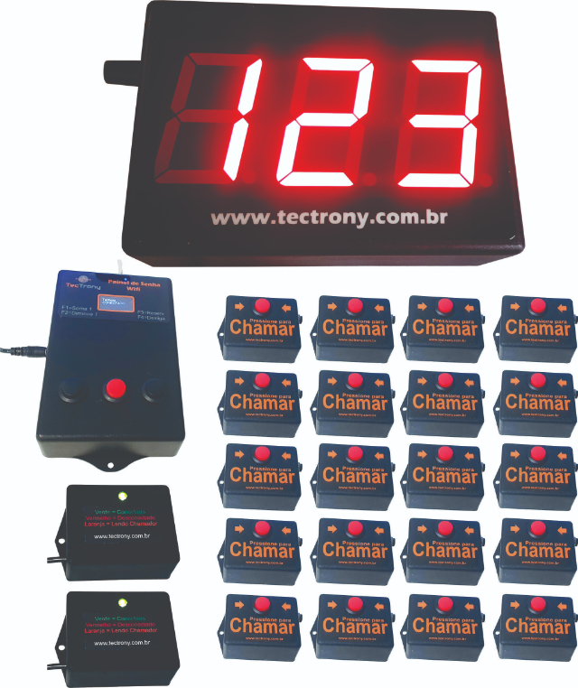 - Painel de chamada com controle de volume